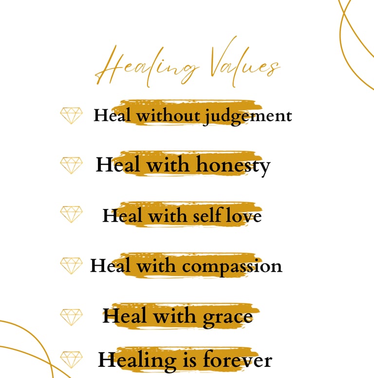 Healing GEMS recognizes that values and core beliefs shape our thoughts, feelings, and behaviors. If we think without judgement, with honesty, self love, and compassion then our healing becomes graceful and is forever.